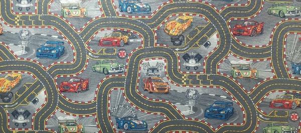 Racers on halli põhjaga ralliteemaline vaip. Vaip on antistaatiline, antibakteriaalne, pleekimiskindel ja kergesti puhastatav. Võib kasutada põrandaküttel.